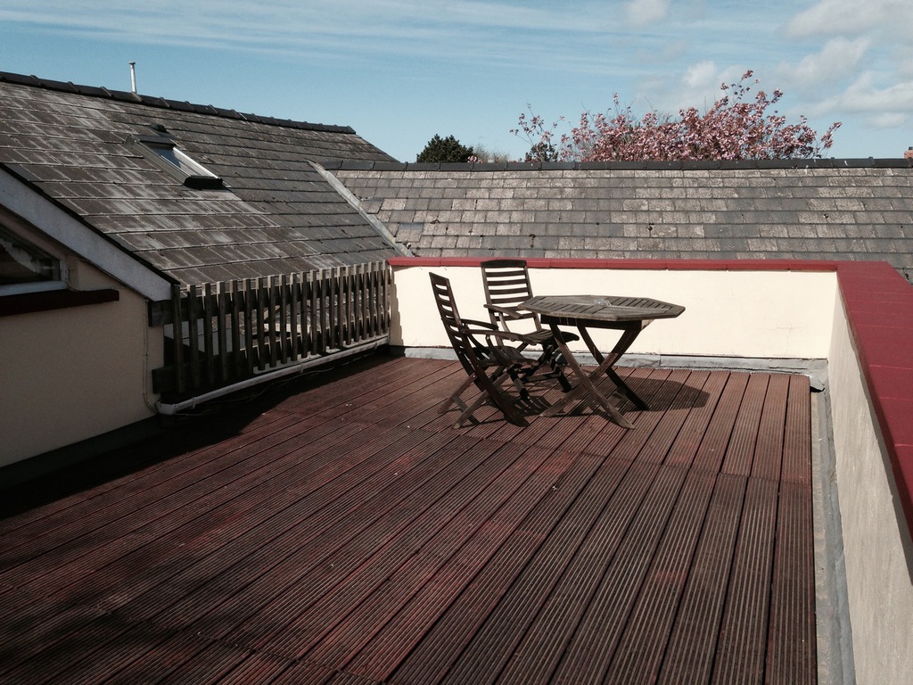 Our superior loft-conversion room. This room offers, a king size bed, a large baclcony with seaviews extending back towards Solva and Newgale. The room has a spacious en-suite, with a luxurious, deep freestanding bath.
